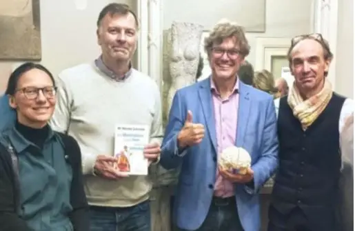 De gauche à droite : Griet, Benoit, Steven Laureys et Fabrice.